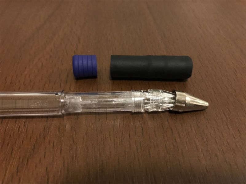 - Put a Signo tip, a G3 grip (stripe side first), and 3 blocks of Supergrip grip inside the Air cap.