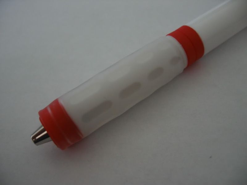- On the Bic round stick barrel, add in this order: 2 blocks of Anyball grip, a full HGG grip (ring side first), and the base of a signo tip inside the HGG grip.